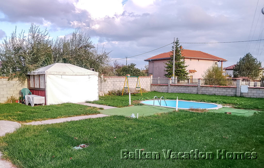 В градината има новопостроен плувен басейн.