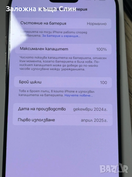 Батерия е на 100% и е на 100цикъла . Телефонът е в много добро състояние има залепен протектор .