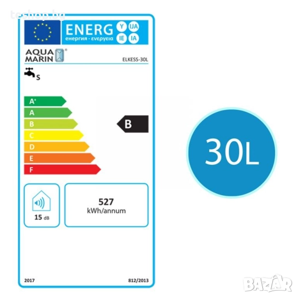 Електрически бойлер 30 литра 1500 W с емайлиран резервоар Аqua Marin
