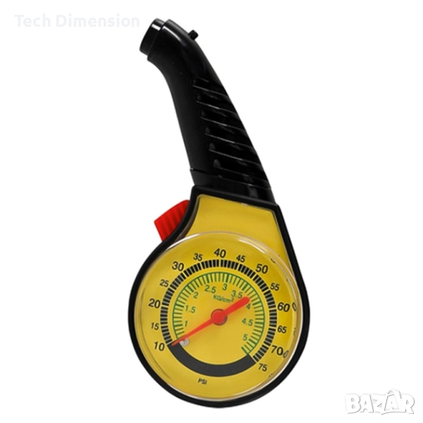 За измерване налягането на гумите. Отчита налягане до 75 psi (0.5-6.0 bar) и е подходящ за всички видове гуми със стандартни вентили на