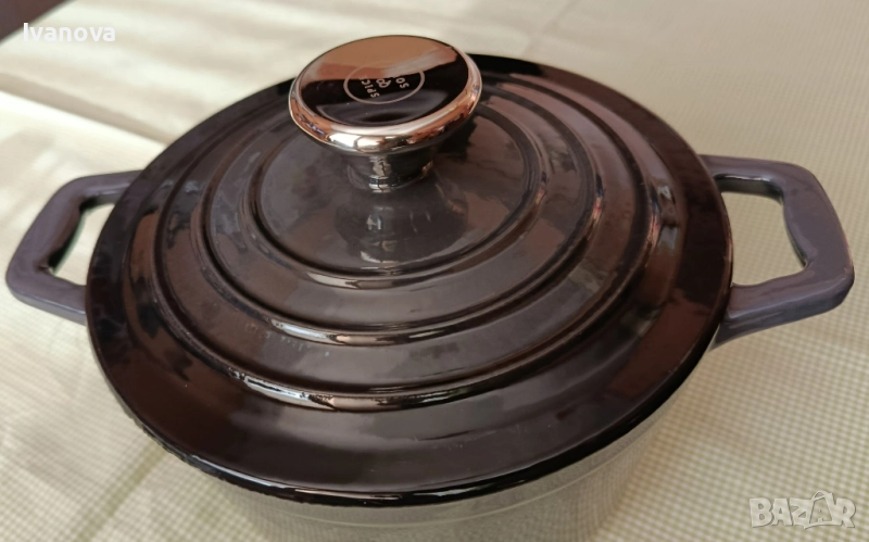 малка тенджерка чисто нова с капак чугунен и той емаилиран отгоре и от долу.