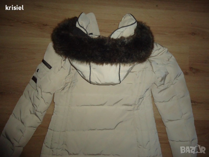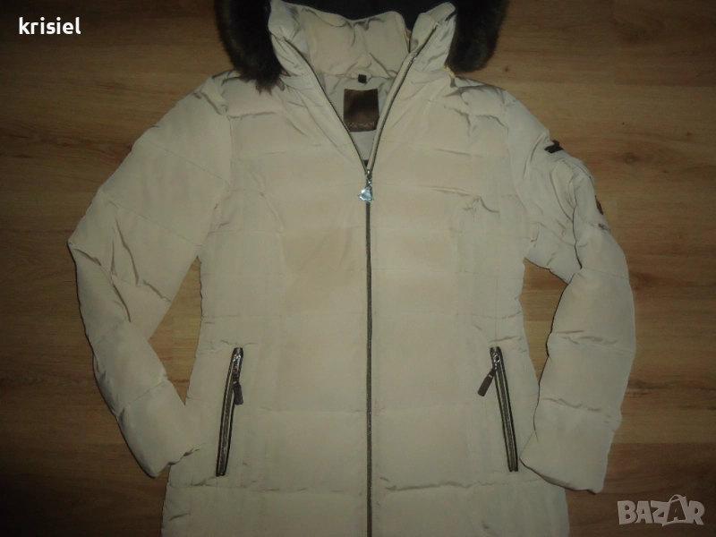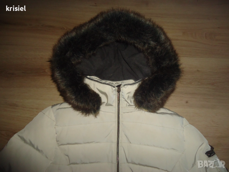 е.Страхотно красив модел.Вталено е.С богат еко пух на качулката,който имитира