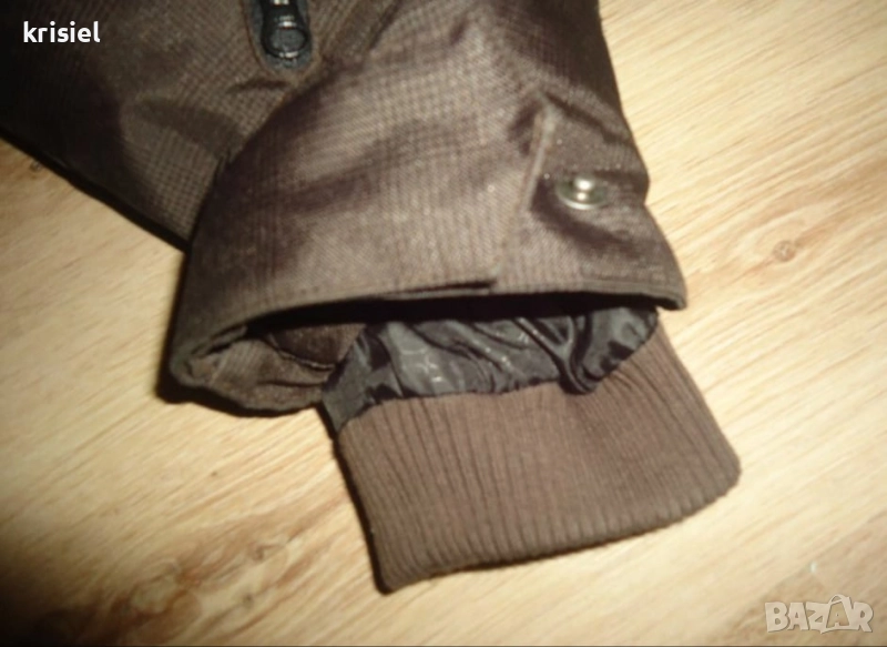 промазка,не пропуска студ и вятър.Закопчава се с цип и капси.На китките също е