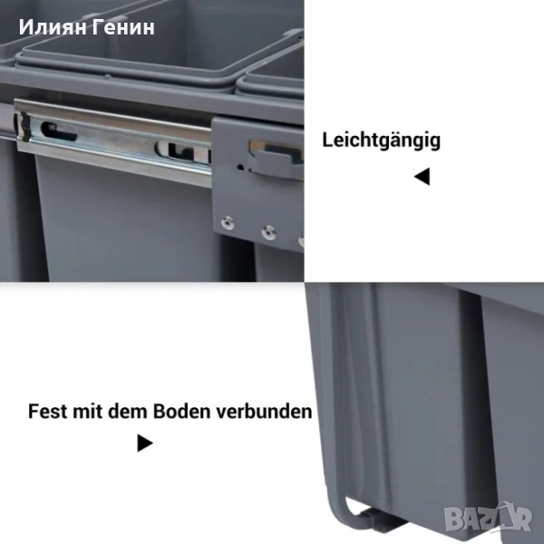 Конструкция за кош за боклук HOMCOM с 3 коша за разделно събиране на отпадъци, релсова система, вградена, комплект от 3 коша за боклук, сив - 130.00лв.