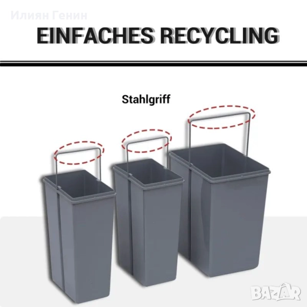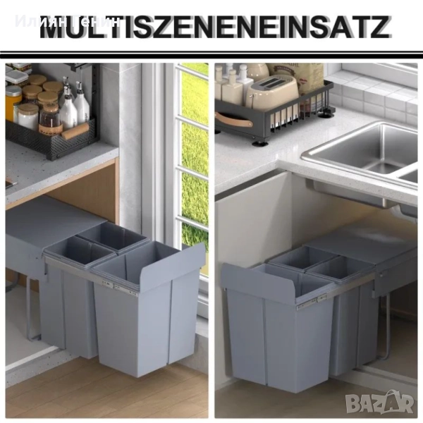 Капацитет 40 литра: Този кош за боклук за монтаж под шкаф предлага две отделения (10 л + 10 л + 20 л) за удобно разделяне на отпадъците и рециклирането, което помага да поддържате пространството си подредено. Идеален за различни среди, като кухни, спални, офиси и кабинети.