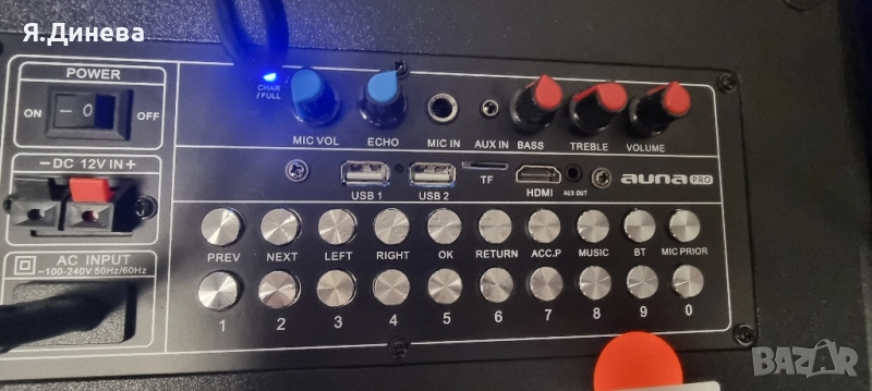 електрическа китара. Два безжични UHF радиомикрофона се грижат за горещи караоке изпълнения, разтърсващи вокални изпълнения и голяма умереност: те светят с чисто предаване - перфектни за разпалване на всяка публика. Системата за караоке KTV M от auna е идеално оборудвана и като мобилно устройство за събития: здравият корпус издържа на големи натоварвания, а удължената дръжка на количката позволява дори на високите диджеи да теглят системата удобно. Мощната акумулаторна батерия 12 V/4,5 mAh осигурява от 3 до 5 часа непрекъсната работа, а включеният в комплекта мрежов кабел улеснява свързването към електрическата мрежа. Пълнофункционалното дистанционно управление позволява управление дори на по-големи разстояния. Независимо дали става въпрос за караоке вечери, DJ изпълнения или презентации за публиката: Караоке системата KTV M от auna прави убедително аудио-визуално впечатление, където и да я използвате. Липсват му микрофоните внос от Германия.