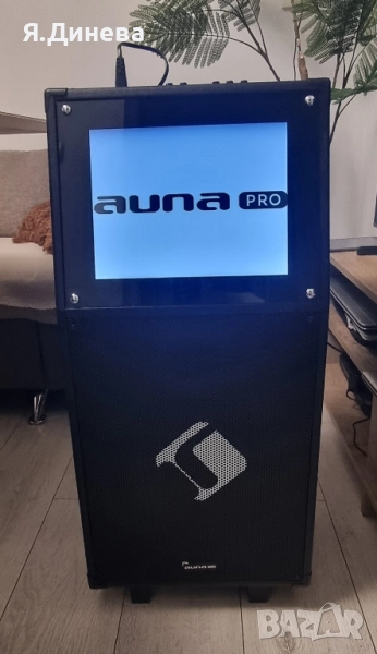 Караоке системата KTV M от auna, благодарение на функцията за количка, големия сензорен екран, 2 UHF безжични микрофона и дълготрайната 12 V / 4,5 mAh батерия , е идеалната система за всички любители на караоке. С помощта на вградения Wi-Fi интерфейс и 12,1-инчовия (30,5 см) сензорен дисплей могат да се възпроизвеждат визуално и звуково различни приложения и браузъри чрез караоке системата KTV M от auna. Това го прави идеален за възпроизвеждане на видеоклипове от YouTube, песни от Spotify и четене на текстове. Мощният 10" (25,5 см) субуфер осигурява ударен бас, който влиза под кожата ви, а 3" (7,5 см) високочестотен говорител допълва звука. Можете да получите желания звук благодарение на различните възможности за свързване: чрез Bluetooth от смартфон, таблет или MP3 плейър, чрез 2 USB порта, SD слот или micro SD, както и чрез HDMI кабел. Изходът AUX също така насочва аудиосигнала към други HiFi аудиоустройства, като например стереосистеми. Входът за микрофон, разбира се, може да се използва и за