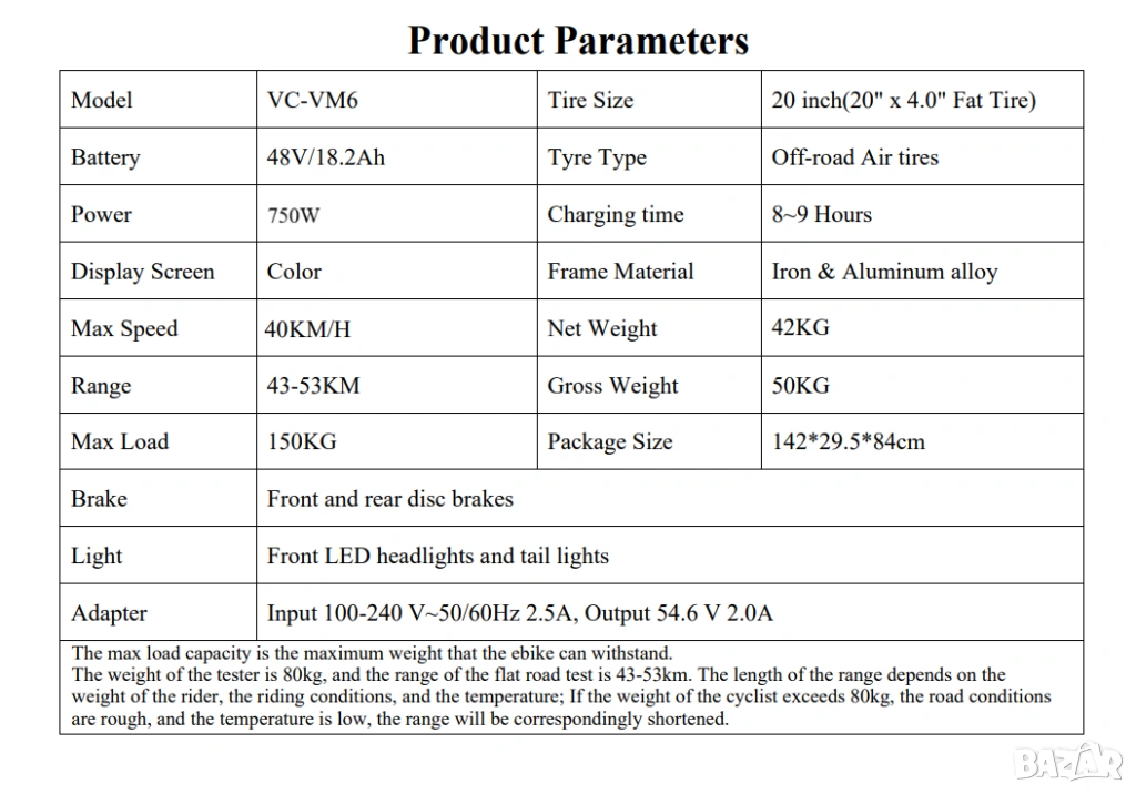 • МАКСИМАЛЕН ПРОБЕГ до 50 км