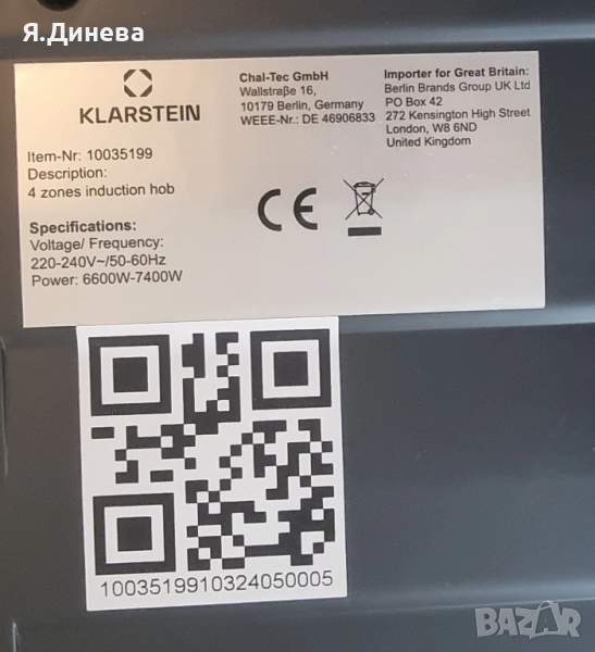 Продавам чисто нови индукционни котлони Klarstein 7400w за вграждане, тествани и работещи. Има 4 котлона 3 малки и 1 голям, в сив цвят. Внос от Германия.