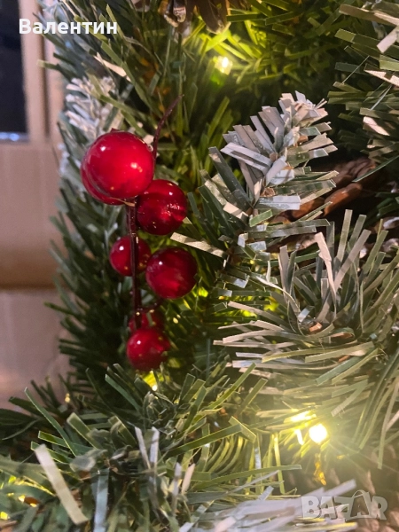 Изкуствена Коледна елха 92см със сняг, 50 светодиода, 10 горски плодове и 10 шишарки → Обява 52314984