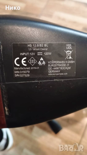 Прахосмукачка hs 12.0 B2 BL (12v-120w) → Обява 52315048