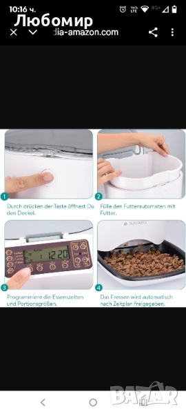 Функционален дизайн: Станцията за хранене ви позволява индивидуално да програмирате времето и количествата храна чрез дисплея или чрез глас, като хранилката осигурява звуково известие.