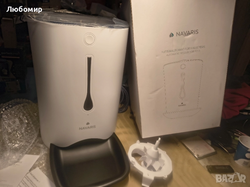 Технически данни: Станцията за хранене има капацитет от приблизително 2 - 3 кг храна и се захранва от USB кабел и захранващ адаптер за електрическата мрежа или с 3 x LR20 D батерии (не са включени). Диспенсърът за храна е подходящ за котешка и кучешка храна.