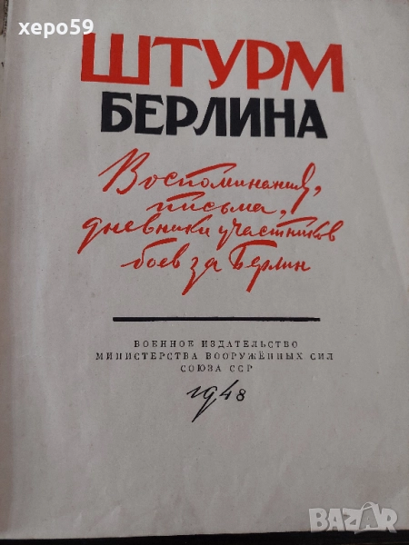 За продажба, Немски метален бронзов бокс(кастеть) и книга Щурм Берлина.Цена на бокса 600 евро,а на книгата 150 евро Предлагам за продажба тази книга посветена на превземането на Берлин във Втората световна война.В книгата са поднесени факти и събития които са се случили при превземането на Берлин през 1945 година.Съветско военно издателство.Всички страници са налични,има много илюстрации,липсва само задната твърда корица.