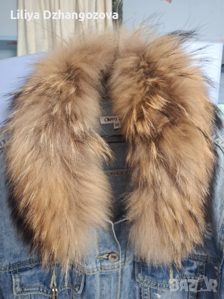 Дънково яке с яка от естествен косъм ,М размер става и за С → Обява 52315383