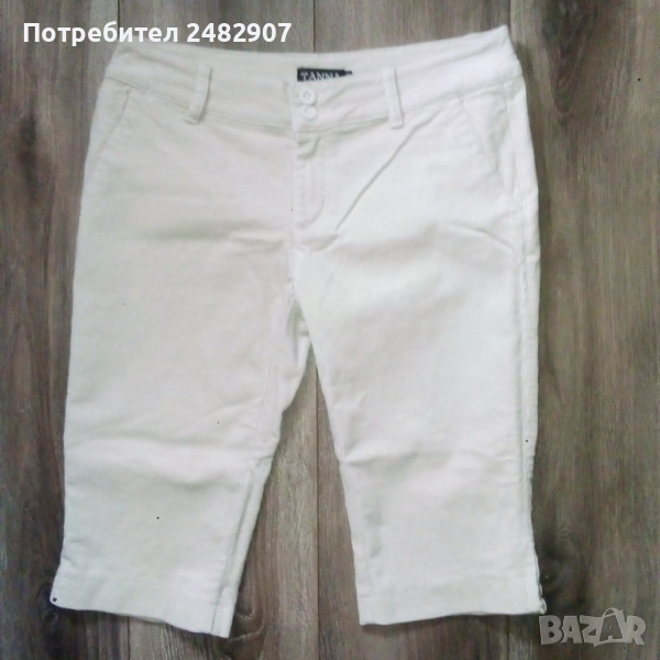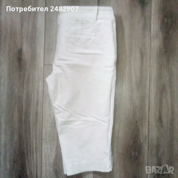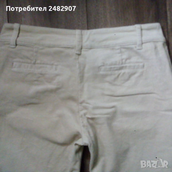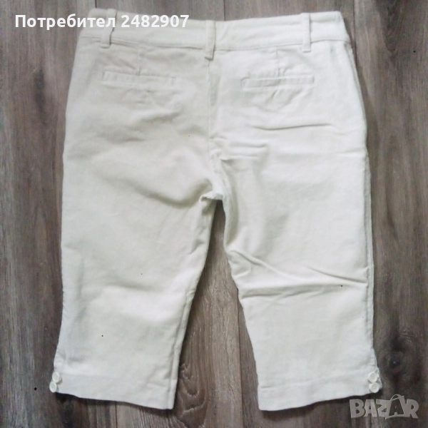 Дамски джинсов 7/8 панталон, цвят шампанско, размер 38. Съдържа 96 % памук и 4 % еластан. Ширина в талията - 39 см, дължина от талията до чатала - 20,5 см, дължина от талията до долу - 57 см, ширина на крачола в долната част - 19 см. Много запазен, почти не е използван, с два джоба отзад и закопчаване с цип и две копчета отпред . Без забележки.