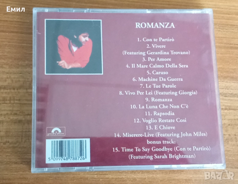ANDREA BOCELLI 1996 - ROMANZA, снимка 1 - CD дискове - 52315404 ANDREA BOCELLI 1996 - ROMANZA, снимка 2 - CD дискове - 52315404 ANDREA BOCELLI 1996 - ROMANZA, снимка 3 - CD дискове - 52315404 1/3