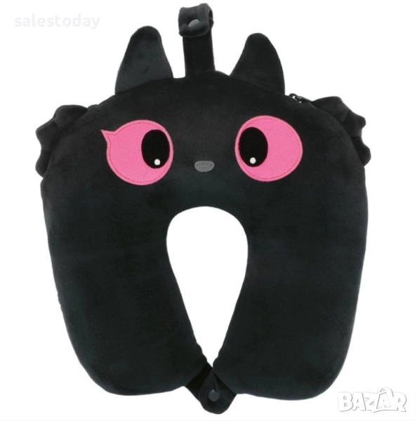Възглавница за път, за дете в кола, 2 в 1, Котка с розови очи, Плюш