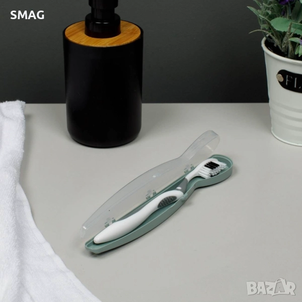 Компактен калъф за четка за зъби за пътуване в свеж ментов цвят. Прозрачният капак и вградените отвори осигуряват бързо подсушаване и поддържат четката чиста. Универсалната форма пасва на повечето стандартни четки за зъби и е удобен за носене.