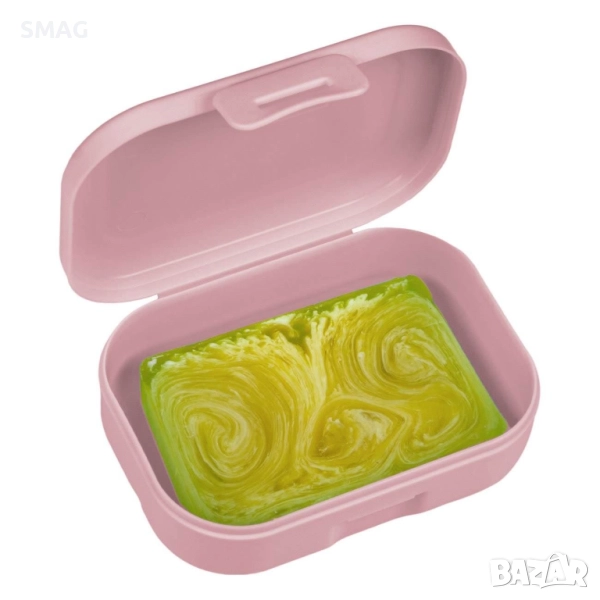 Практична пластмасова сапунерка за пътуване в нежен розов нюанс Powder Pink. Снабдена е с клипс за сигурно затваряне, който предпазва сапуна от разливане и замърсяване. Компактна и удобна за пренасяне в куфар или тоалетна чантичка.