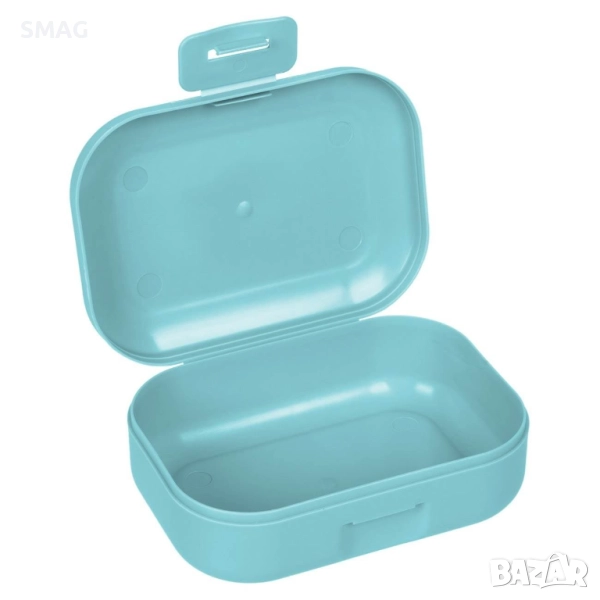 Компактна пластмасова сапунерка за пътуване в свеж ментов нюанс. Снабдена е с практичен клип за сигурно затваряне, който предпазва сапуна от намокряне и разливане. Идеална за пътувания, почивки и спортни чанти.