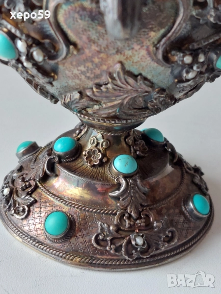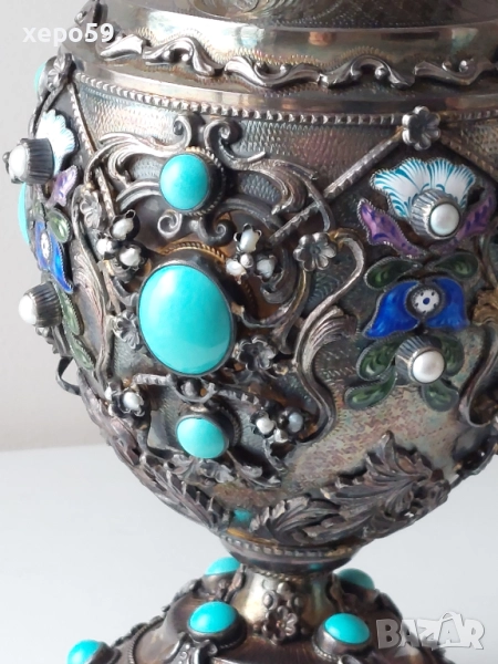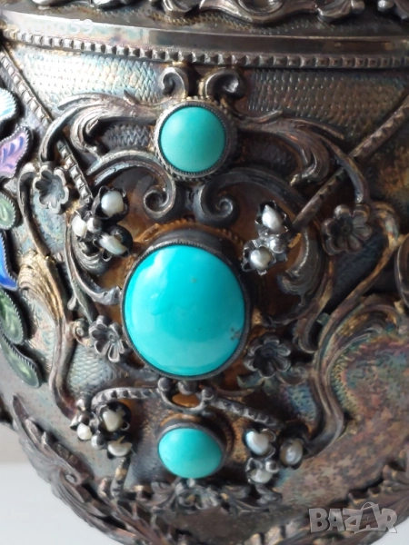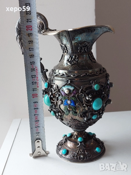 Стара Антикварна Сребърна кана за вода/сребро 925 проба,емайл,тюркуази/чаша,сребро/ → Обява 52316145