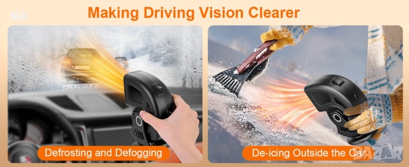 Идеално решение за автомобили, кемпери, камиони и други превозни средства, когато се нуждаете от допълнителен източник на топлина или бързо изчистване на мъгла и лед от предното стъкло.