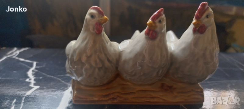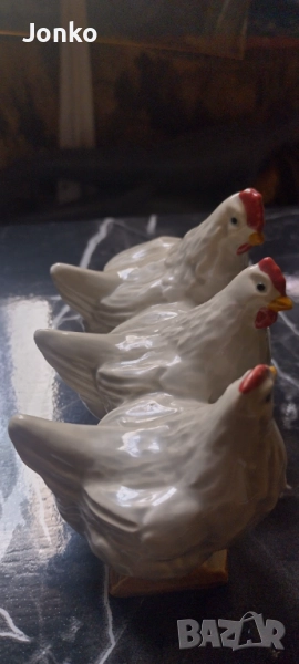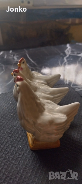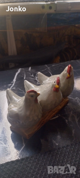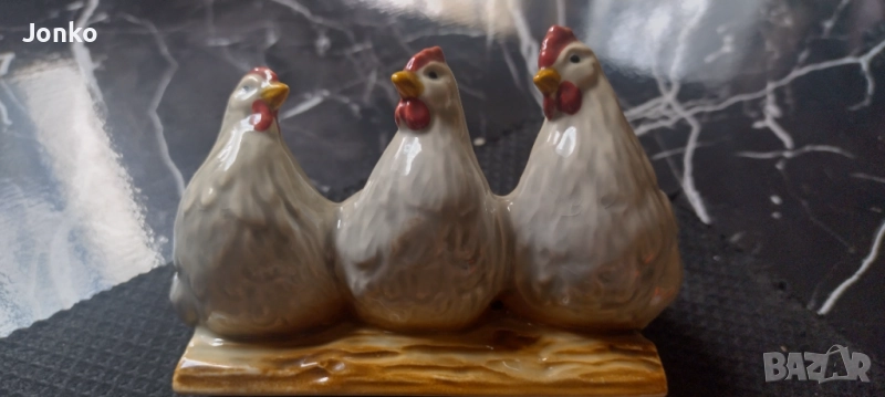 Продавам запазена немска порцеланова колекционерска статуетка на три кокошки върху дънер на фирмата "Goebel" без дефекти като нова!
