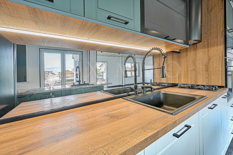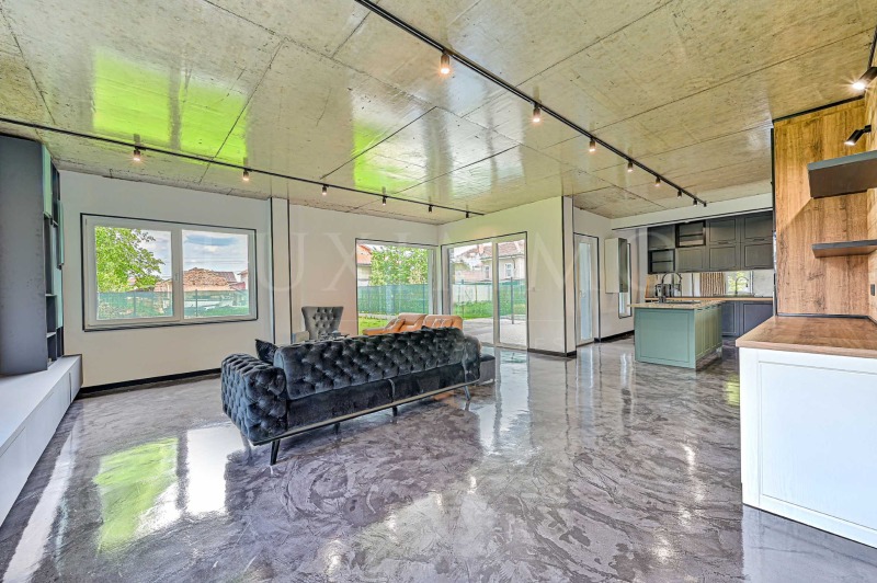 Къщата е проектирана с внимание към детайла, обзаведена по индивидуален дизайнерски проект и завършена с висококачествени материали. Интериорът съчетава модерна визия, функционалност и усещане за уют и лукс.