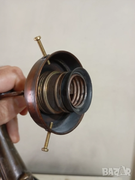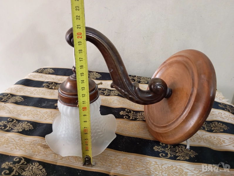 Корпус от дърво и месинг,месингова фасунга.Размери и състояние видни на снимките.