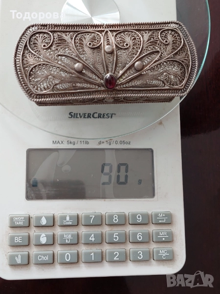 Стара Сребърна филигранна кутия за бижута с натурален рубин/сребро 925/ → Обява 52317358