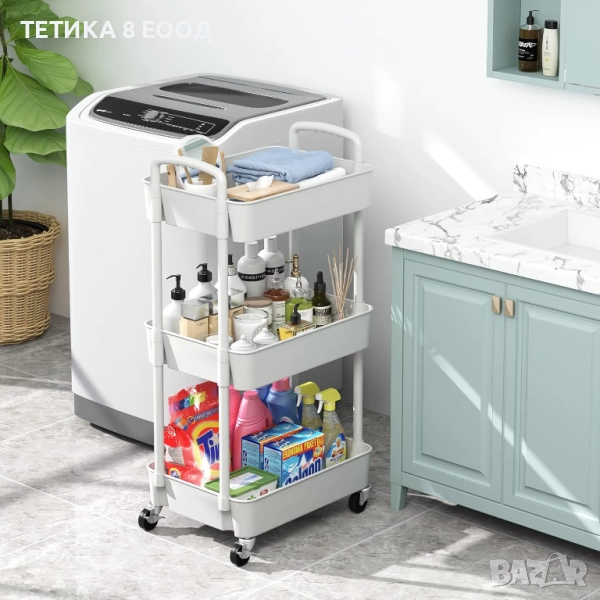 Количка с колела, 3 рафта, 39 x 29 x 76 см, пластмаса/метал, бяла.
