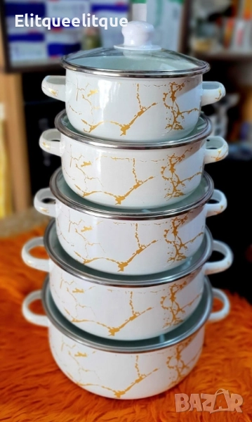 Комплект от 5 броя многослойни емайлирани тенджери със стъклени капаци. ? Обогатете своята кухня с комплект от 5 многослойни емайлирани тенджери! ? Със стъклени капаци за лесно следене на готвенето. ? Идеален за разнообразни кулинарни приготовления! ?✨