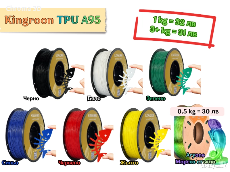 •Kingroon — TPU A95 — Black (черен) — 32 лв / 31 лв (1 кг / 3+ кг)