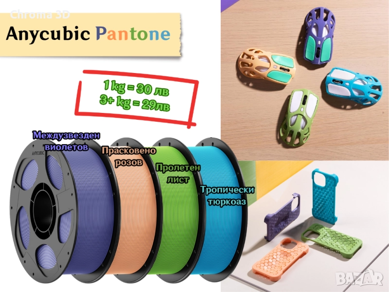 •Anycubic — PLA Pantone — Spring Leaf (пролетен лист) — 30 лв / 29 лв (1 кг / 3+ кг)