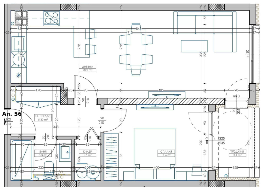 Всекидневна с кухненски бокс