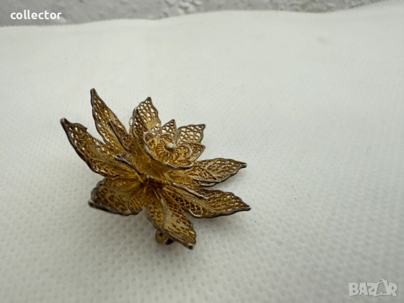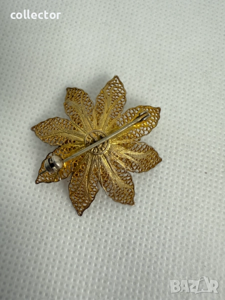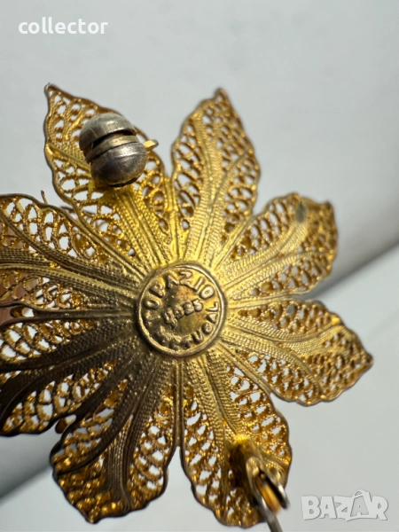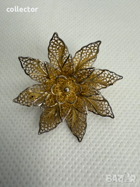 Португалска сребърна брошка с позлата, ръчна изработка - филигран. Същата е произведение на фирма - Topazio. Отлично състояние, налични маркировки.