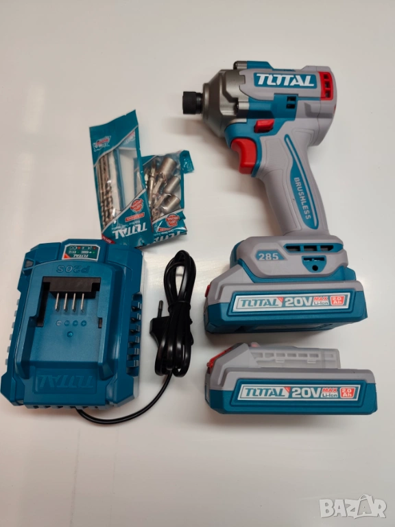 -Акумулаторен ударен безчетков гайковерт без батерия TOTAL INDUSTRIAL, 1/2", 20 V, 850 Nm-75€.