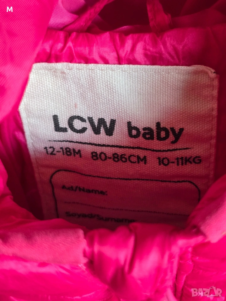 Светло розови яке. По етикет е за 2г.,но е подходящо и за 1-2г. (При желание предоставям размери в см.). Без забележки. Шушляк с пълнеж. Цикламено яке на LCW 80/86н. Без забележки. Не се разделят.