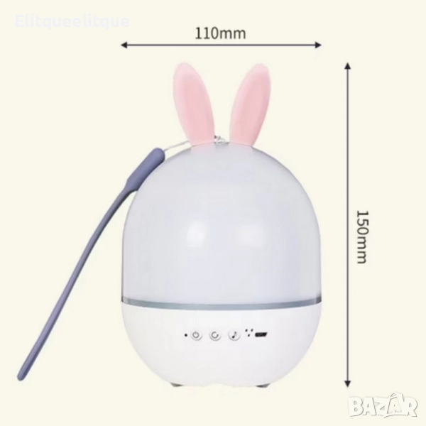 Детето ти се страхува от тъмното или трудно заспива? Тази въртяща се нощна лампа-проектор ще превърне всяка вечер в приказка. Лампата проектира звездно небе, морски сцени и весели фигури, докато нежната ѝ музика успокоява и приспива. С 6 сменяеми филма, въртящ ефект и USB зареждане, тя е удобна, безопасна и лесна за употреба. Компактният размер 15×11 см и формата на зайче с ушички я правят очарователен подарък за момчета и момичета. Нощната лампа-проектор съчетава светлина, музика и вълшебство – за сладки сънища и усмивки всяка вечер.