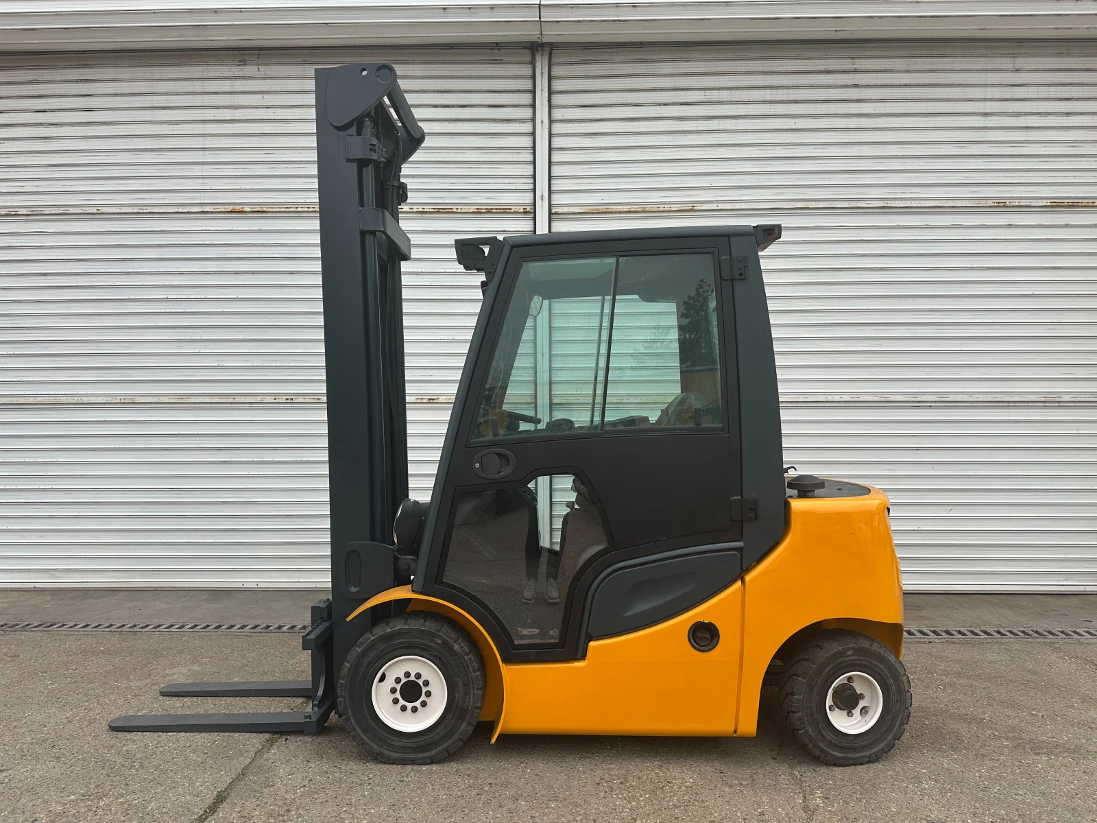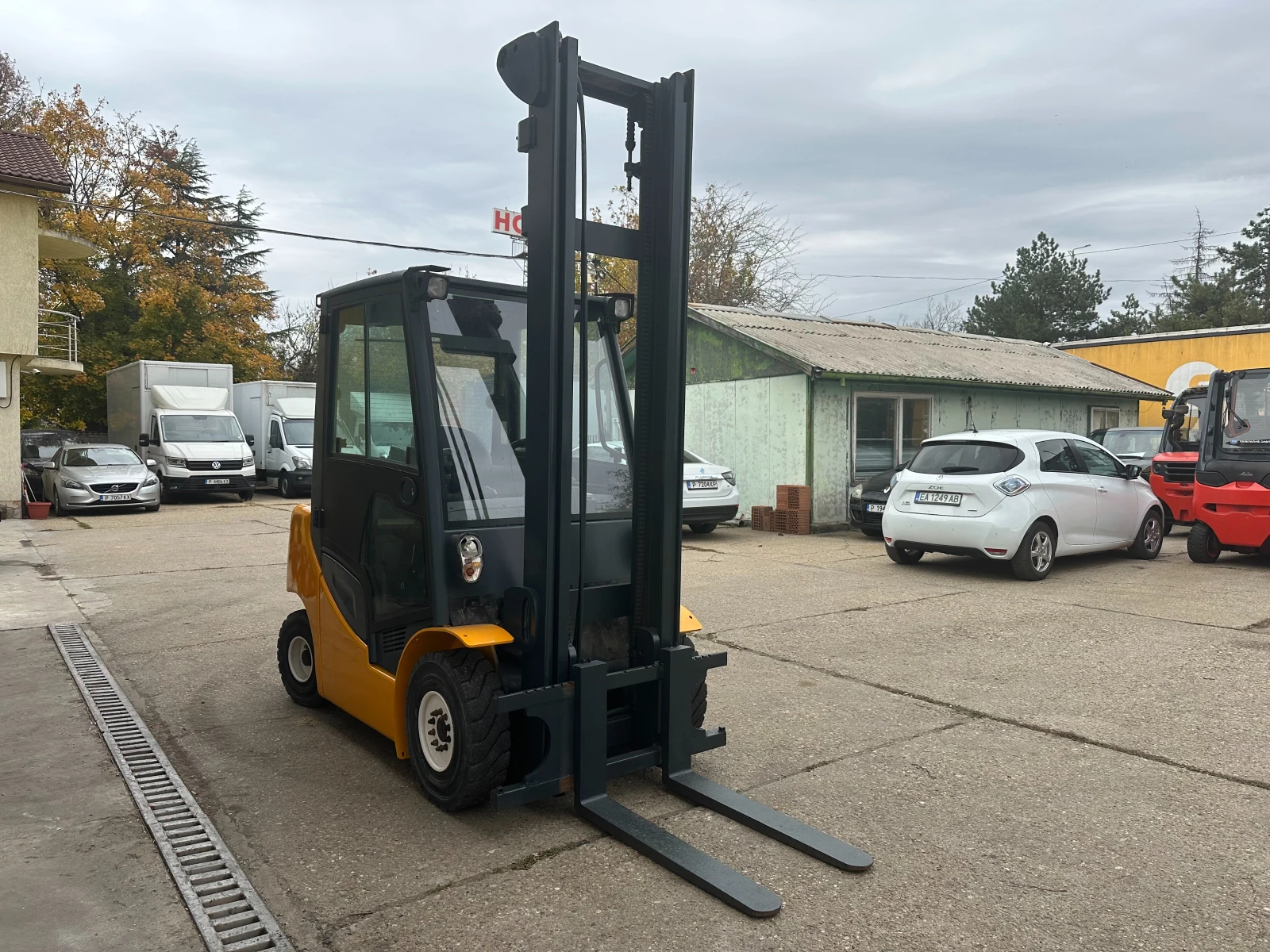 Хидростатика. Двигател VW 2000 куб. см. Повдигателна у-ба - стандарт. Н=4, 45м. , Нстр. = 2, 82м. Позиционер с виличен изравнител. Полукабина - предно, горно и задно стъклао. Чистачка. Работно осветление, зумер, лампа жълта , радио. Нов внос