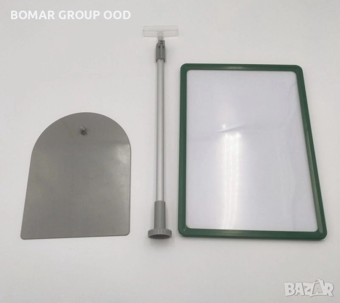 Комплект рамка с прозрачен джоб и стойка с метална основа за магазини