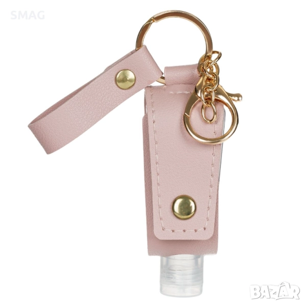Стилна антисептична бутилка с вместимост 30 мл, поставена в елегантен кожен калъф в цвят Nude. Оборудвана с метална халка, която позволява удобно закачане към ключове, чанта или раница. Идеална за хигиена в движение и пътуване.