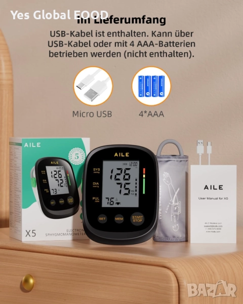 AILE автоматичен апарат за кръвно налягане за горна част на ръката