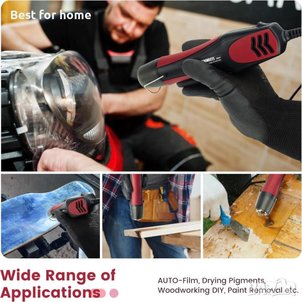 【Широко приложение】Термопистолетът KAIWEETS KEH01 е идеален за винилови опаковки, занаяти, свиваеми тръби, кабелни конектори, огъване на PVC тръби, ремонт на електроника, щамповане и други приложения за сушене и размразяване.