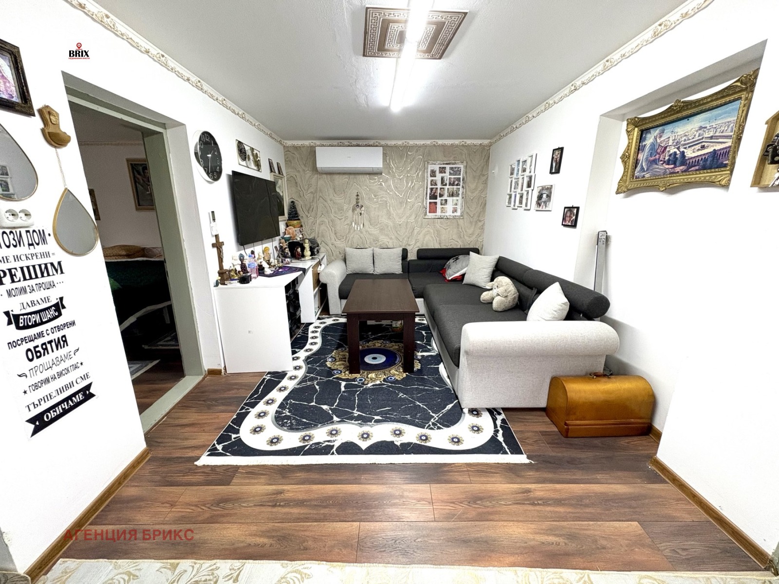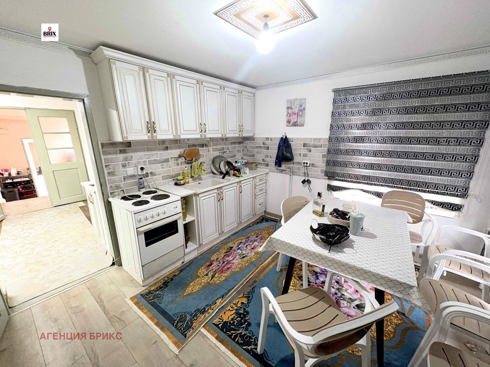 В двор от 1120 кв. м. е разположена просторна къща на един етаж с два входа. Едната част на къщата е напълно ремонтирана и готова за нанасяне. Сменена е дограмата с ПВЦ, отоплението е на ток, подовите настилки в стаите са ламинат и теракота. На таваните е направена изолация с вата и гипсокартон. Покривът е в добро състояние.