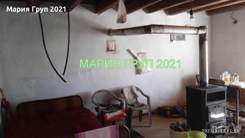 Първи етаж: стая/ в която има легло и печка/, килер, втора стая/В нея има легло, мивка и маса/, малка баня с тоалетна, работилница с инструменти