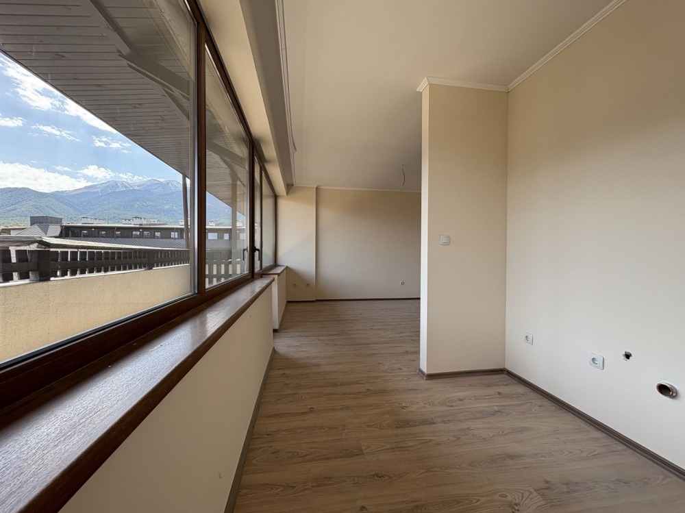 Студиото се намира на 6 ти етаж и има южно изложение. От балкона се открива страхотна гледка към Пирин Планина. В имота се влиза директно. Кухнята е отделена в отделна ниша. Балкона е просторен и е разположен по цялата дължина на студиото. Банята е с вана.