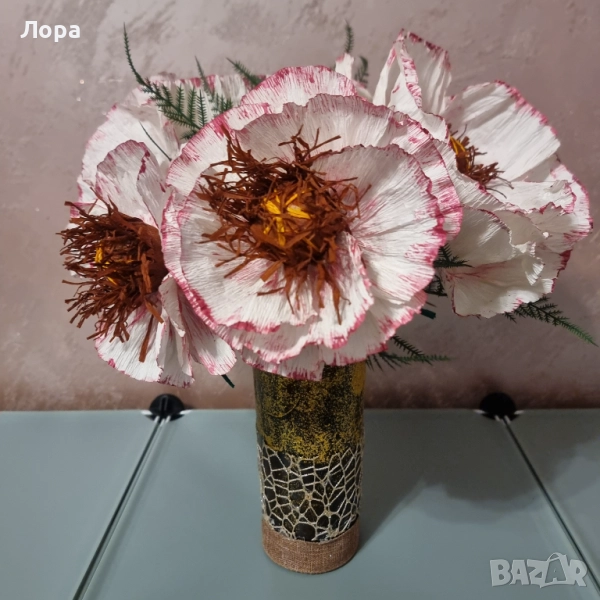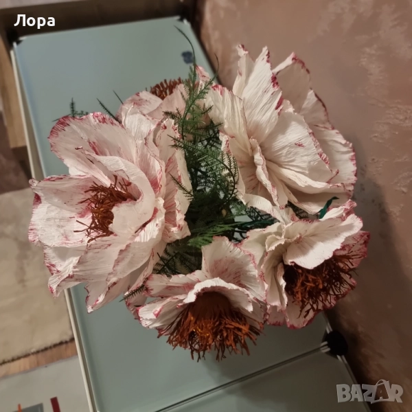 цветя от висококачествена италианска креп хартия, оформени и моделирани с