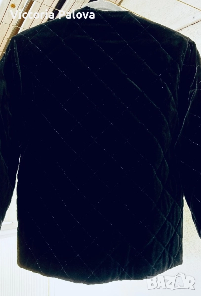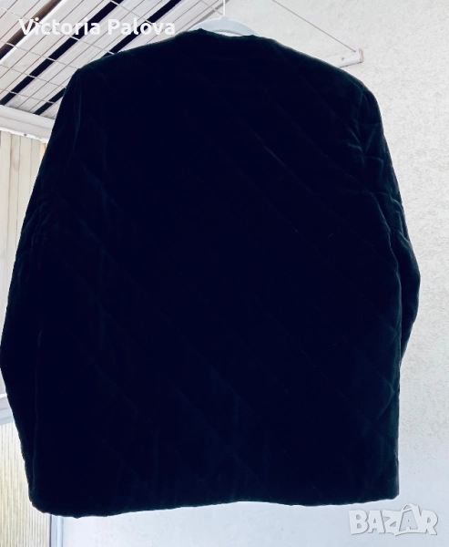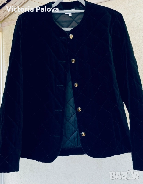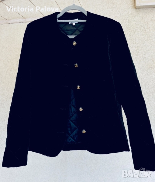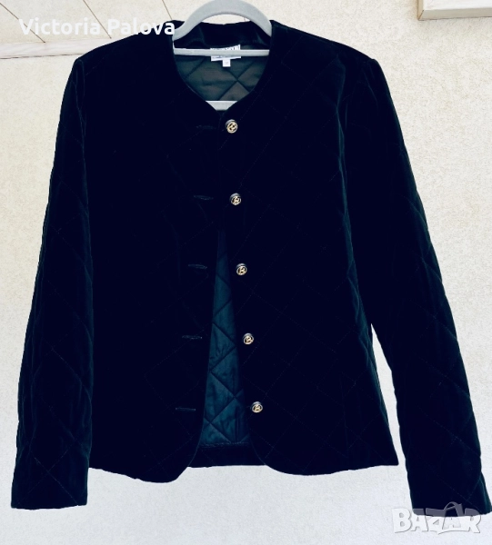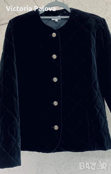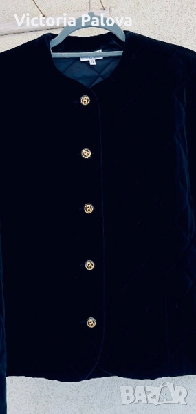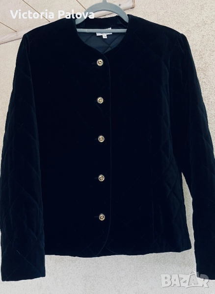 Изключително елегантно бутиково сако- яке от немската марка STENAU - символ на висококачествена изработка и изискан стил. Създадено е като дизайнерско изделие с луксозна кадифена материя и фина капитонирана структура, която подчертава детайла и формата. Златистите копчета и изчистеното кръгло деколте придават неповторим чар и усещане за класа. Стои перфектно, излъчва увереност и финес - от онези редки дрехи, които изглеждат истински скъпо. Рамо - 40см ( леки подплънки) , ГО - 54 см едностранно, дължина - 63см, ръкав - 60см.